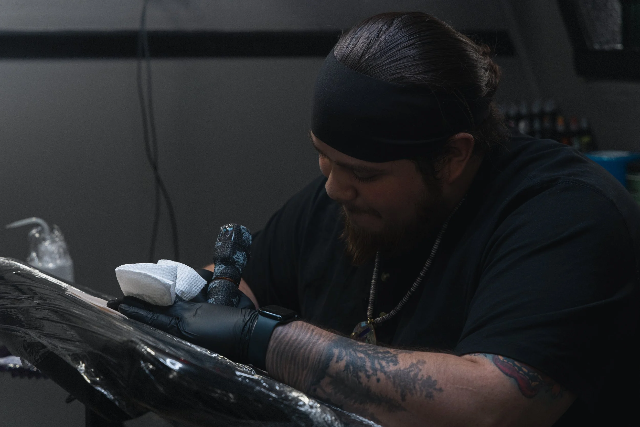 Meet our newest member, Sergio, a proud Southern Ute artist with deep passion for art and tattooing. Sergio has spent the last year growing his craft in the studio, bringing imagination and culture to every piece he creates.